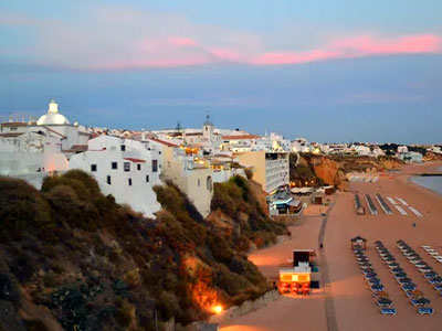 An overview of the southern Portuguese coastline, including geographic background on cliffs and historical context of the old town district.